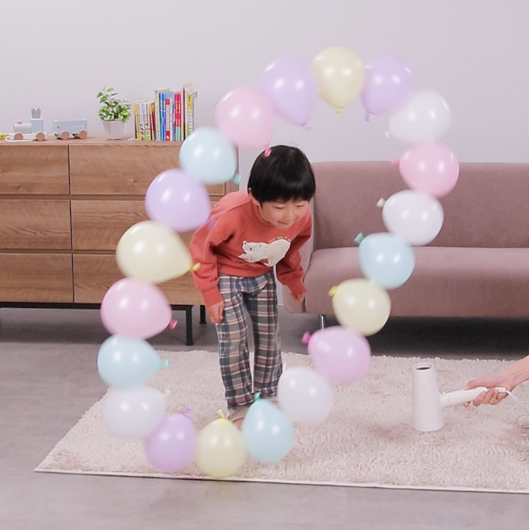 こんなに楽しいおうち遊びある?ドライヤーで回る!?ぐるぐる風船に挑戦