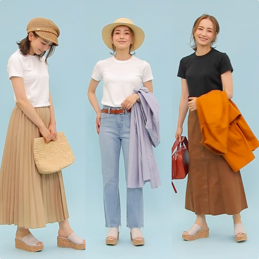 定番をおしゃれに着こなす♪辻本舞が着るUNIQLO U人気Tシャツコーデ