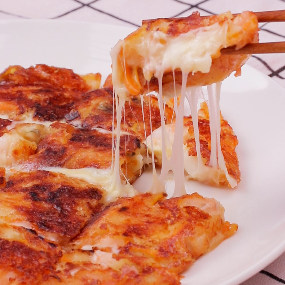 圧倒的に片付け楽ちん 粉も全部ワンパンで!チーズとろ〜りチヂミ