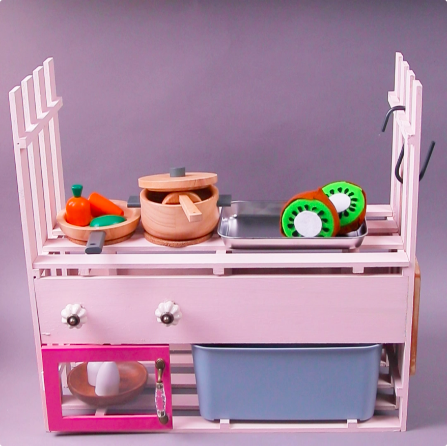 100均素材で作れる!コンロにレンジまで♡おままごとキッチンをDIY