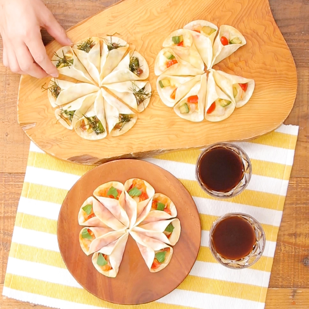 ギョーザの皮でピザパしよう! 掴みやすくて食べやすい かわいいブーケ風ピザ
